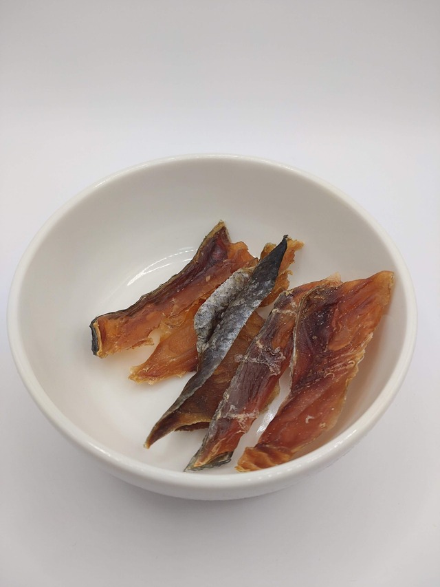 北海道産の天然秋鮭を使用 高タンパク・低カロリー・ビタミンB12・ビタミンD・DHA・EPA・ミネラルが豊富! 養殖に比べ、脂肪が少なくカロリーも半分程度! 脳機能の向上や疲労・ストレス軽減、脂質の代謝を促し皮膚や粘膜の健康維持にも役立つと言われています。 皮つきなので、天然のガムの役割もあります。 お肉のアレルギーがある子には魚系、特に鮭がオススメです!